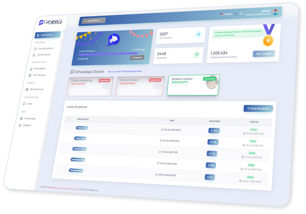 قم بأتمتة عملك باستخدام أقوى نظام بث الرسائل و Smart ChatBot الذي قدمناه. لا يوجد حد يومي لإرسال الرسائل, رسائل لا نهائية وبلا حدود.